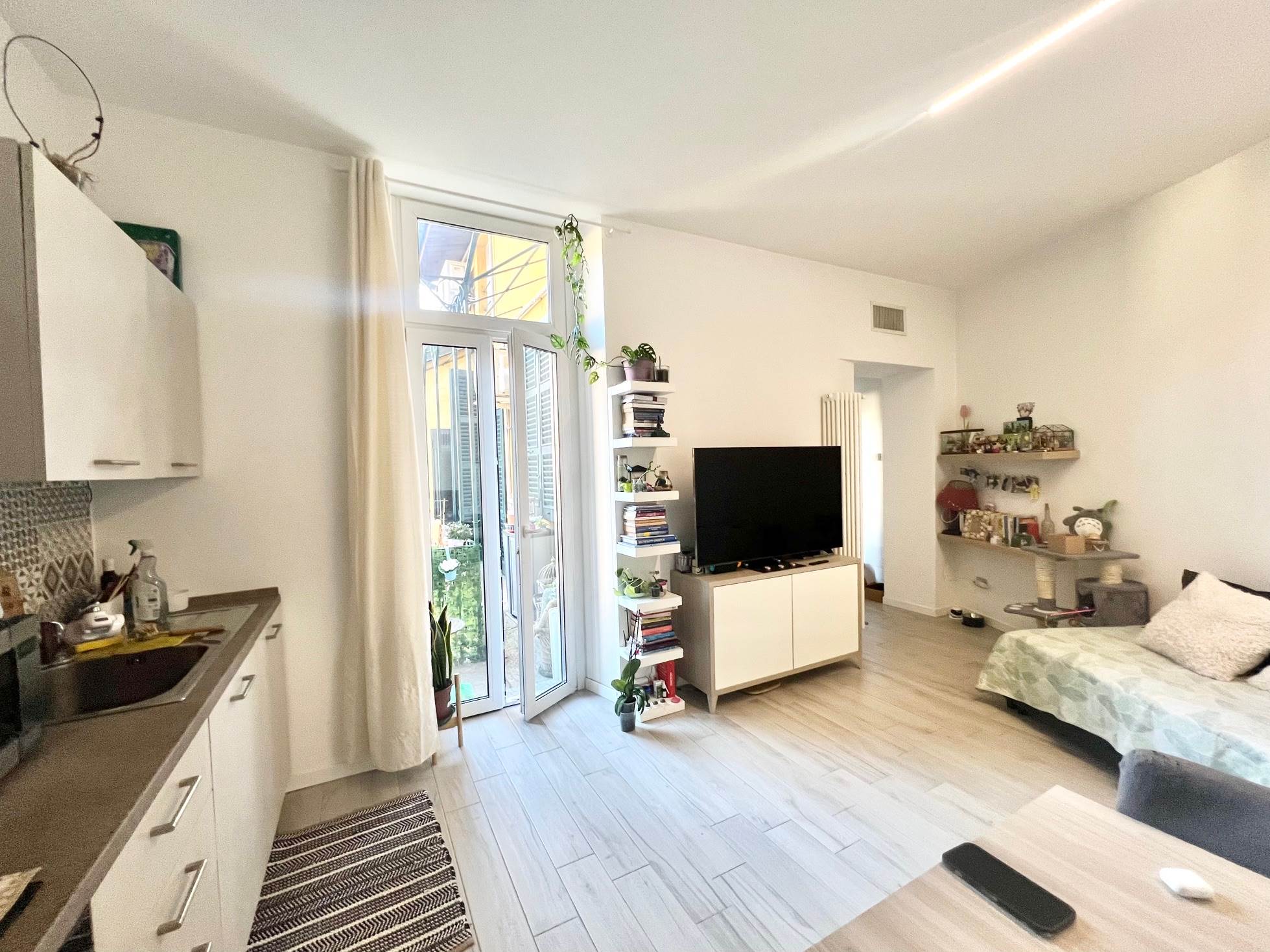 Situato al secondo piano con ascensore e composto da ingresso con soggiorno con cucina a vista, ampio balcone con ripostiglio adibito come lavanderia, camera da letto matrimoniale con porta-finestra affacciata sul balcone e bagno con doccia.