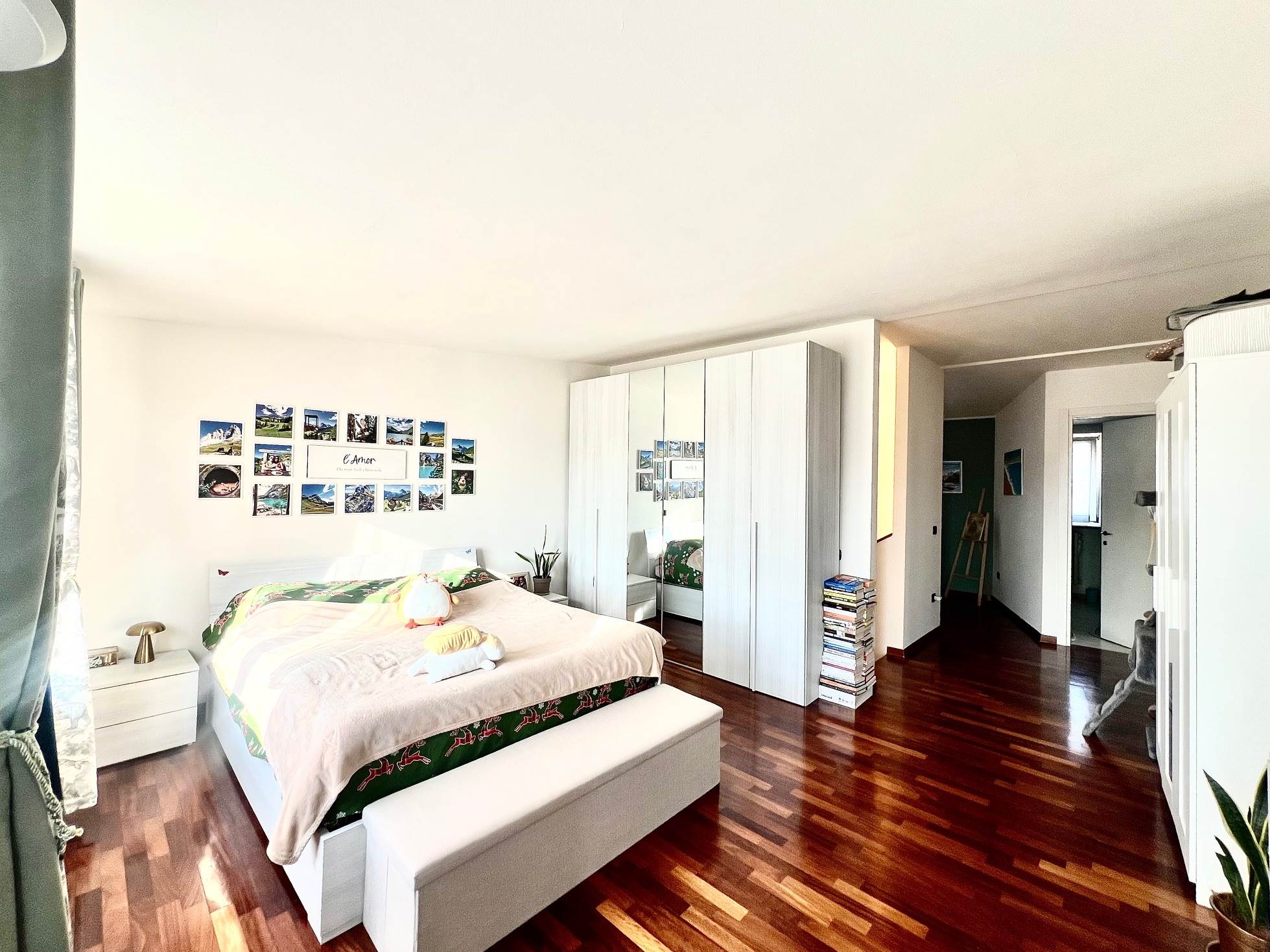 Al piano terra troviamo il soggiorno ampio e luminoso, la cucina abitabile e il bagno con vasca, al piano superiore vi è la zona notte composta da una camera da letto spaziosa e con balcone, seconda cameretta anch'essa con balcone (adibita a studio) e bagno con doccia.